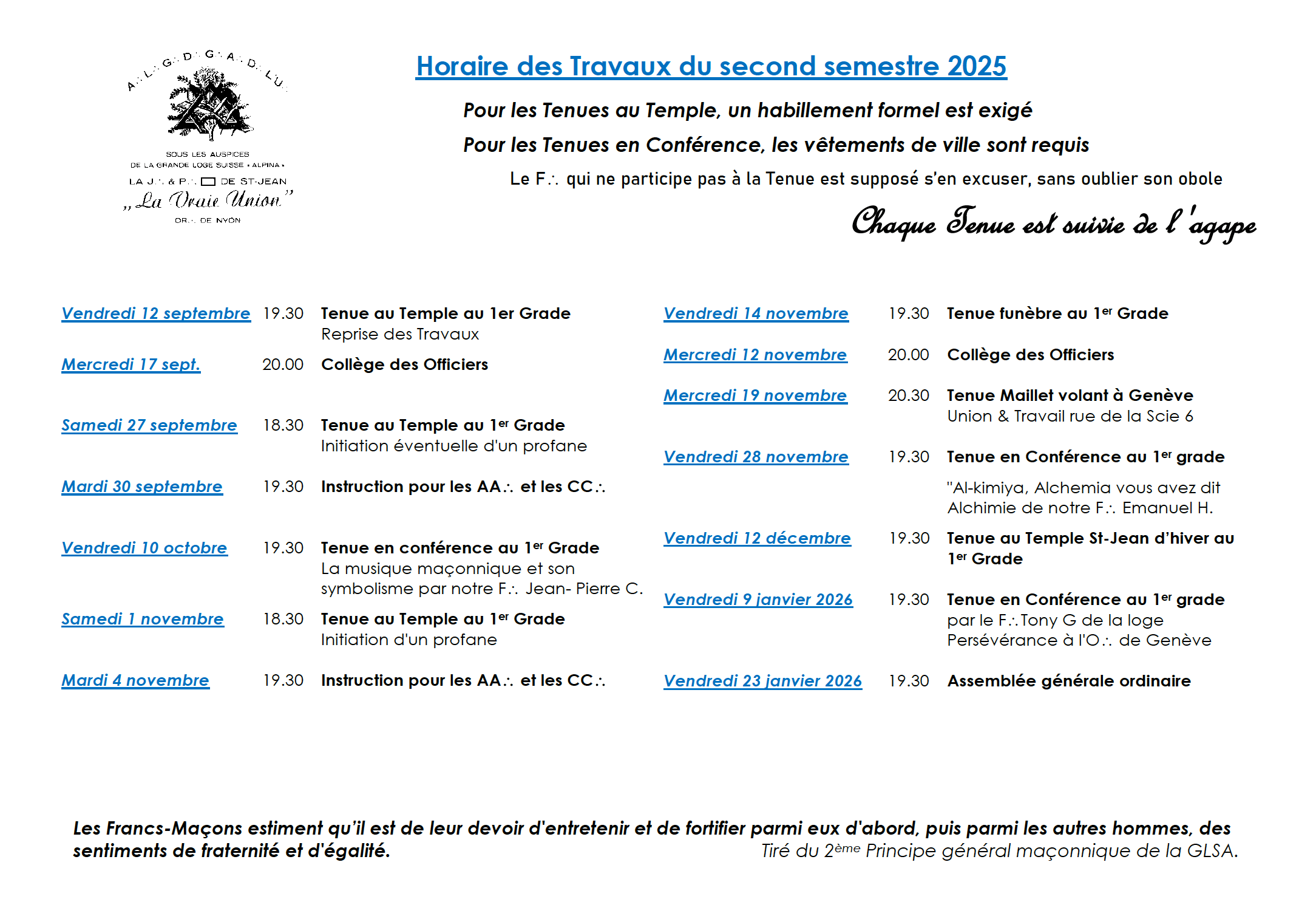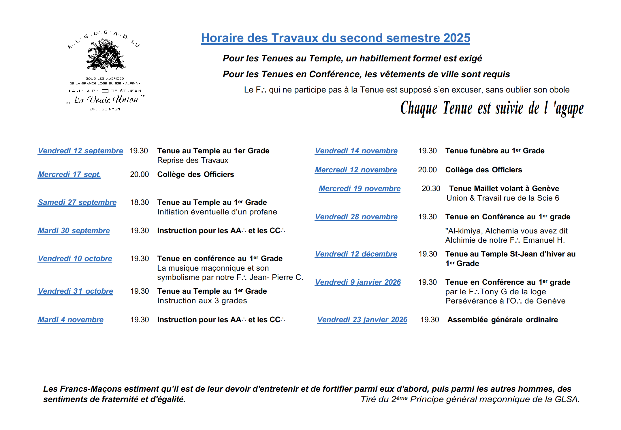 pour les inscriptions merci de nous envoyer un email secretaire@lavraieunion.ch
